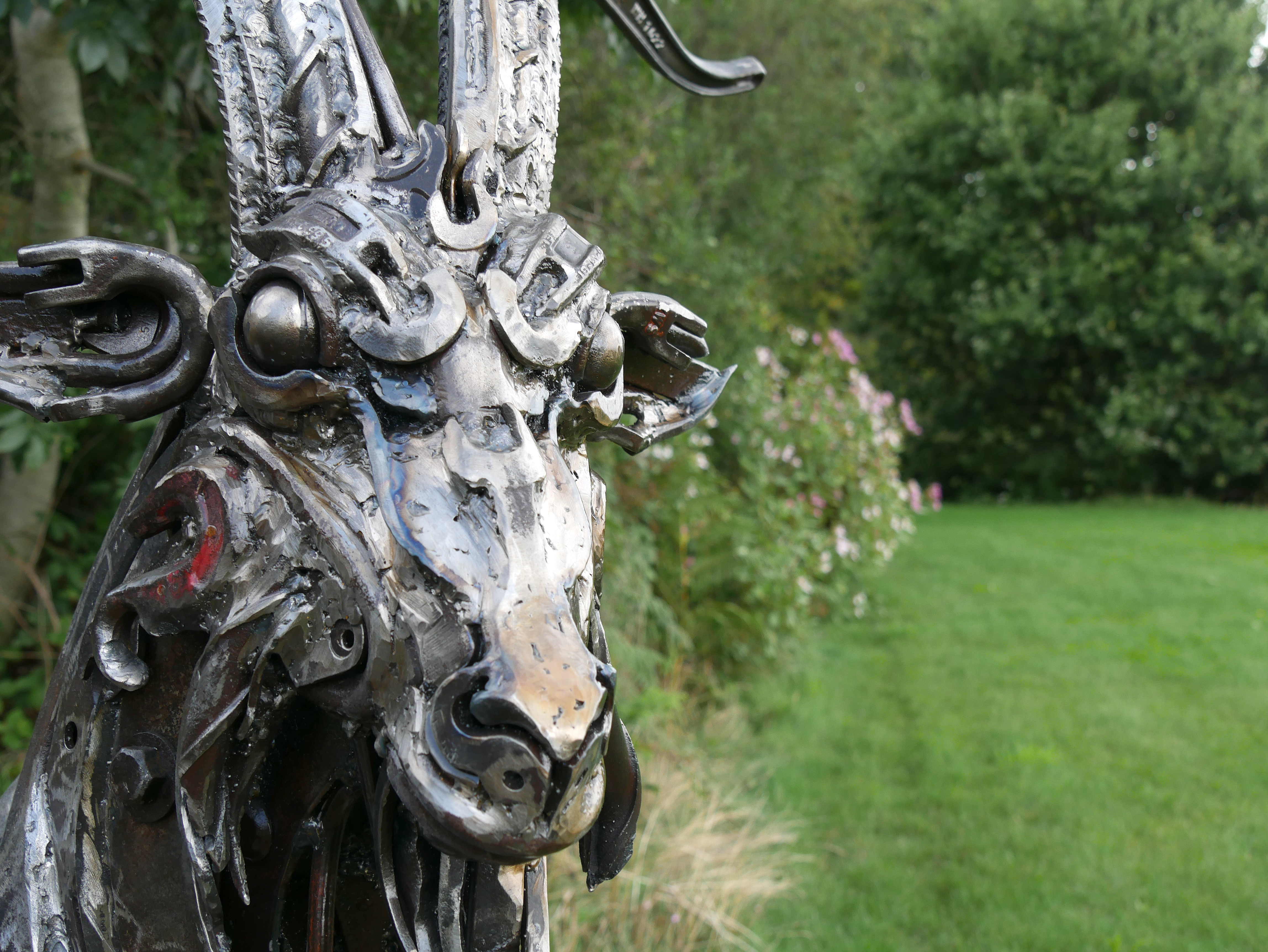 This recent commission of a mountain goat was an absolute pleasure to work on, drawing inspiration from both a local billy and some of the wonderful regimental goats of the Royal Welsh found on the Great Orme in Conwy county. The distinct challenge with this piece was trying to find the balance between suggesting the fur of a mountain goat with carefully shaped and placed steel and not trying to too hard to produce each strand of hair!